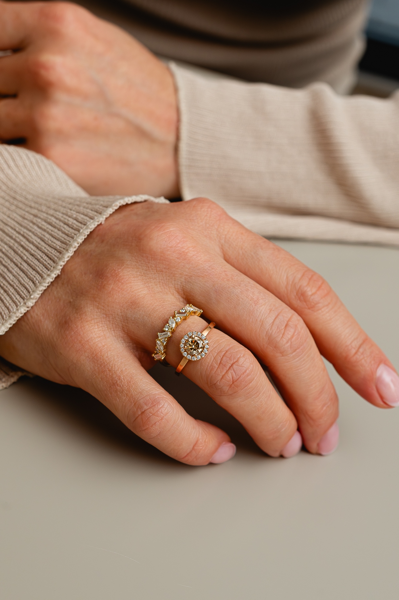Your piece of jewelry is custom-made. Based on the design you chose, Laurence selects the prettiest gemstone(s) and/or diamond(s). Your unique piece is then handcrafted in Antwerp by Laurence’s experienced goldsmiths and setters. -